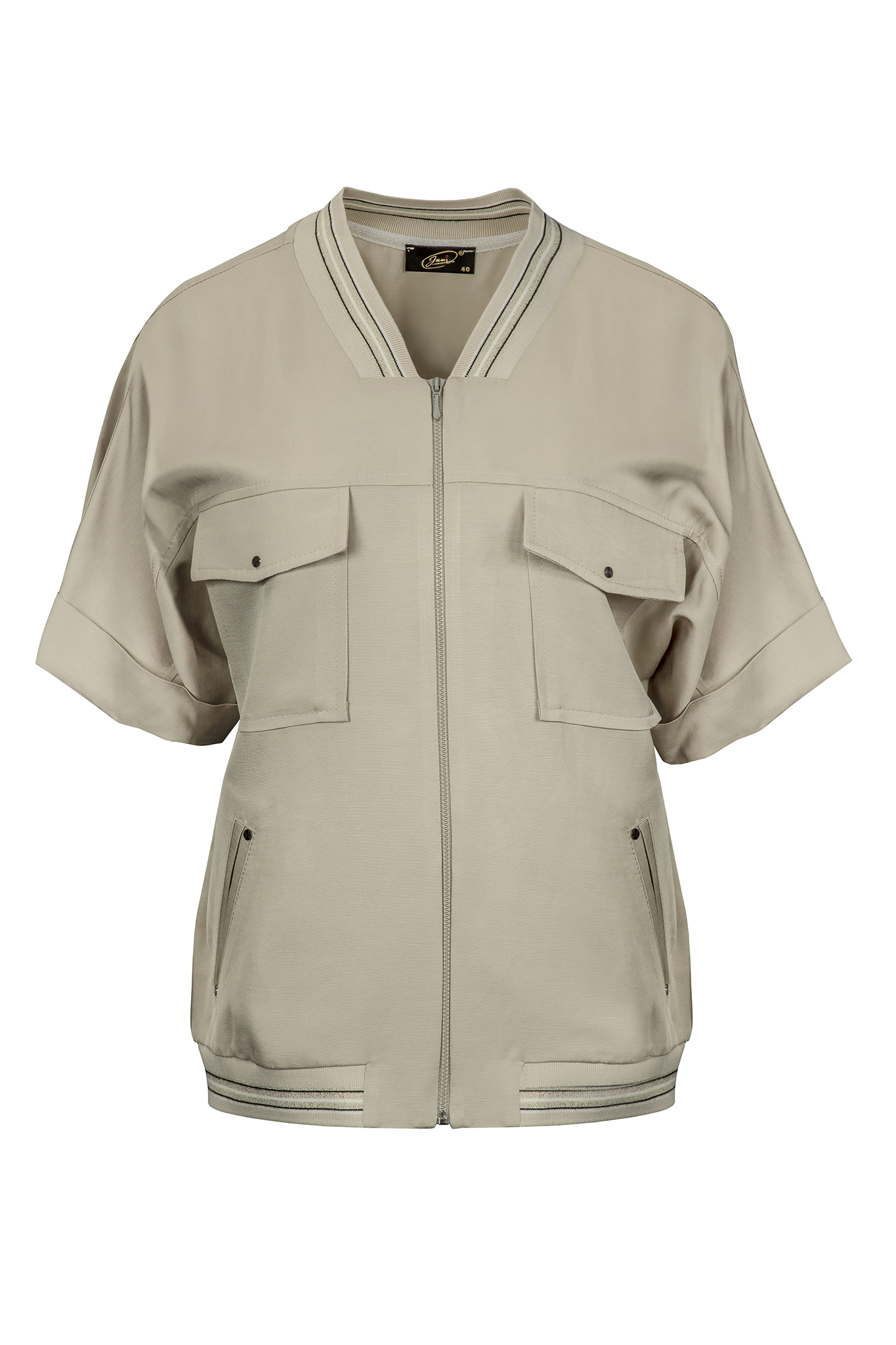• Szaro-oliwkowa bluzka damska z lnu i wiskozy, polska produkcja Jumitex.